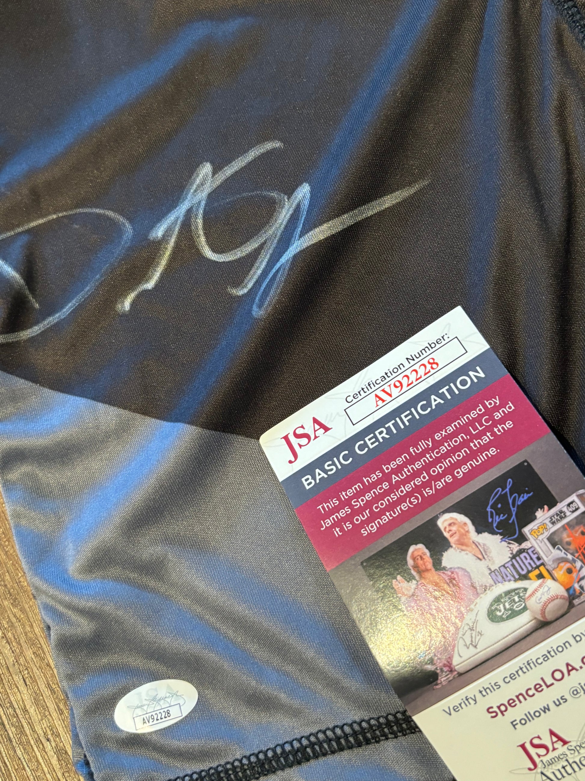 These UFC shorts are personally signed by Demetrious Johnson, also known as Mighty Mouse, and come with JSA certification to guarantee authenticity. A perfect collectible for fans and sports memorabilia enthusiasts, these shorts combine genuine athlete signature with official verification for added value and trust.