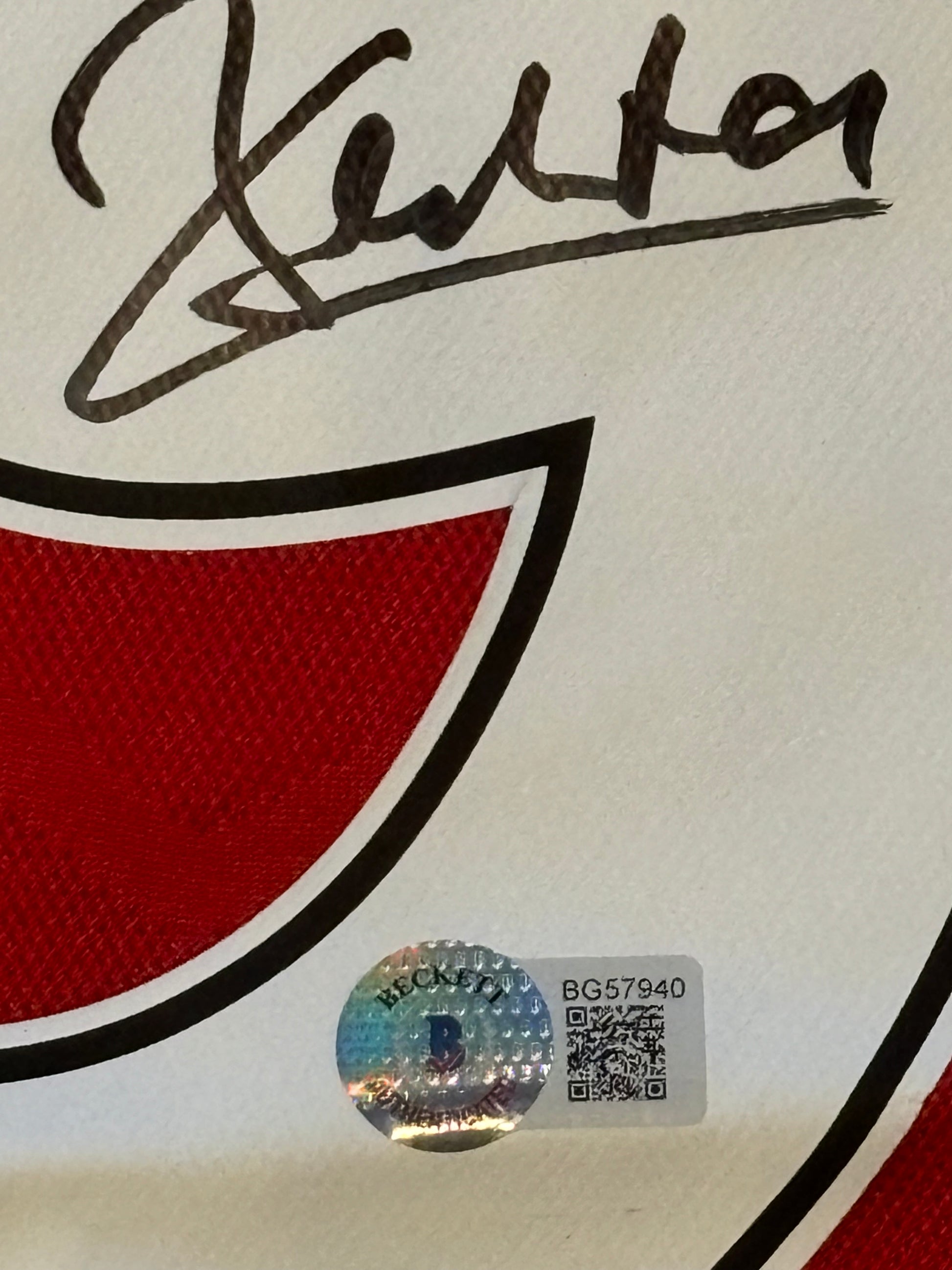 This authentic Manchester United shirt is signed by Dimitar Berbatov and comes with a Beckett Certificate of Authenticity featuring a QR hologram for verification. A perfect collectible for fans and memorabilia enthusiasts, it guarantees genuine signature authentication.
