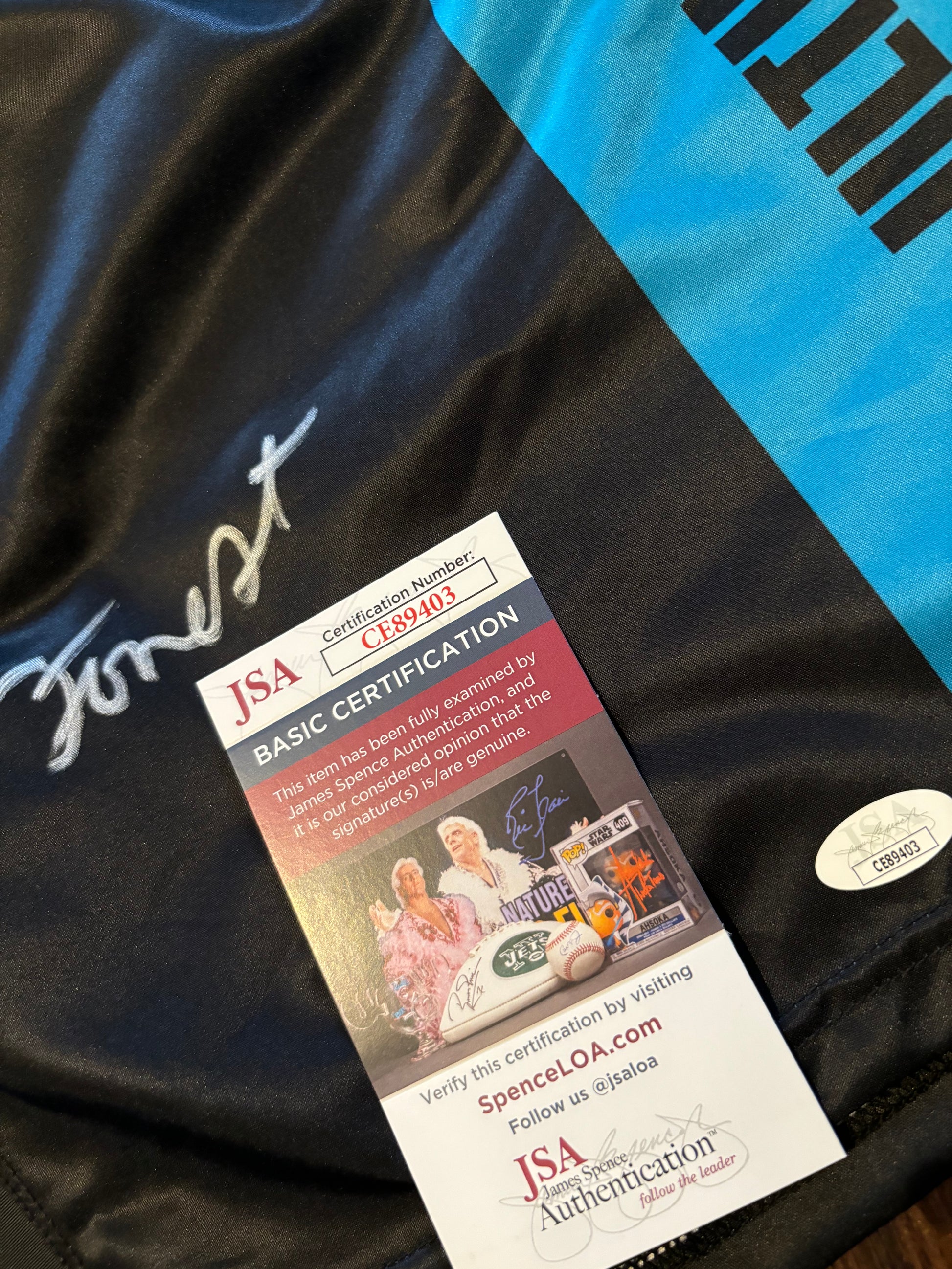 These Forest Griffin signed UFC shorts are a must-have for any mixed martial arts fan. Certified by JSA, they celebrate Griffin’s Hall of Fame induction and his time on The Ultimate Fighter. Perfect for collectors seeking authentic memorabilia with verified provenance.