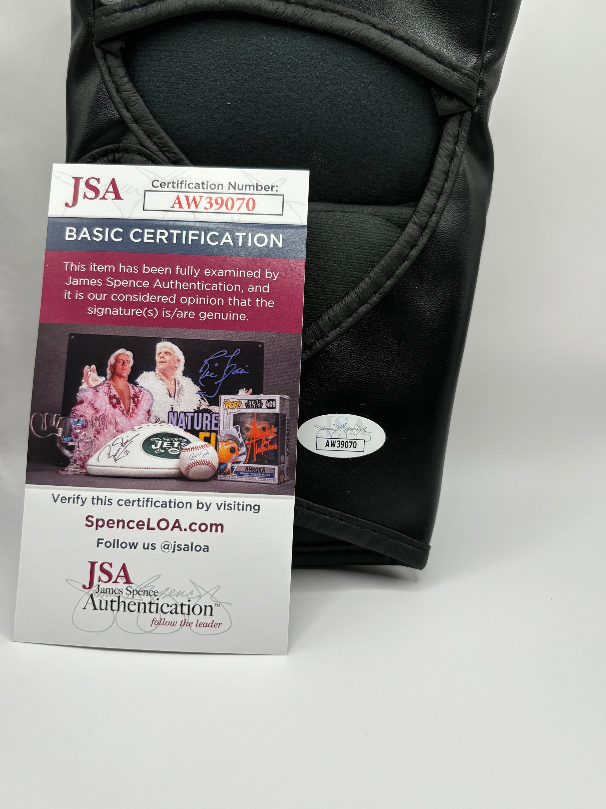 Max Holloway's authentic signed UFC glove, authenticated by JSA with certificate of authenticity. This genuine piece features the UFC featherweight champion's signature in blue ink, making it an exceptional addition to any MMA memorabilia collection. Perfect for dedicated fans and serious collectors seeking verified sports collectibles with documented provenance.