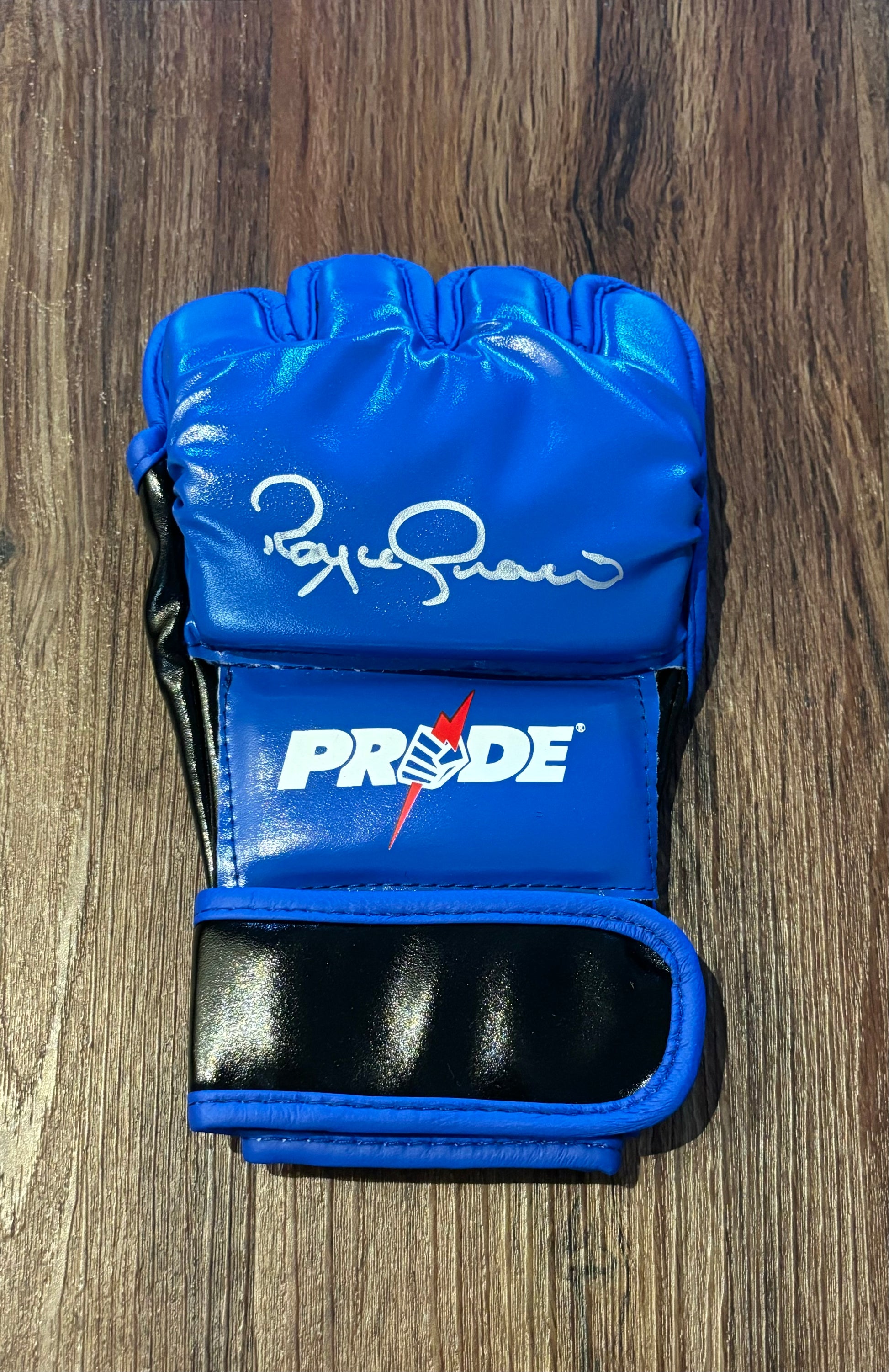 This Pride glove is signed by Royce Gracie and comes with a Beckett Certificate of Authenticity featuring a QR hologram for verification. A perfect collectible for MMA fans, it offers verified provenance and a unique piece of fighting history.