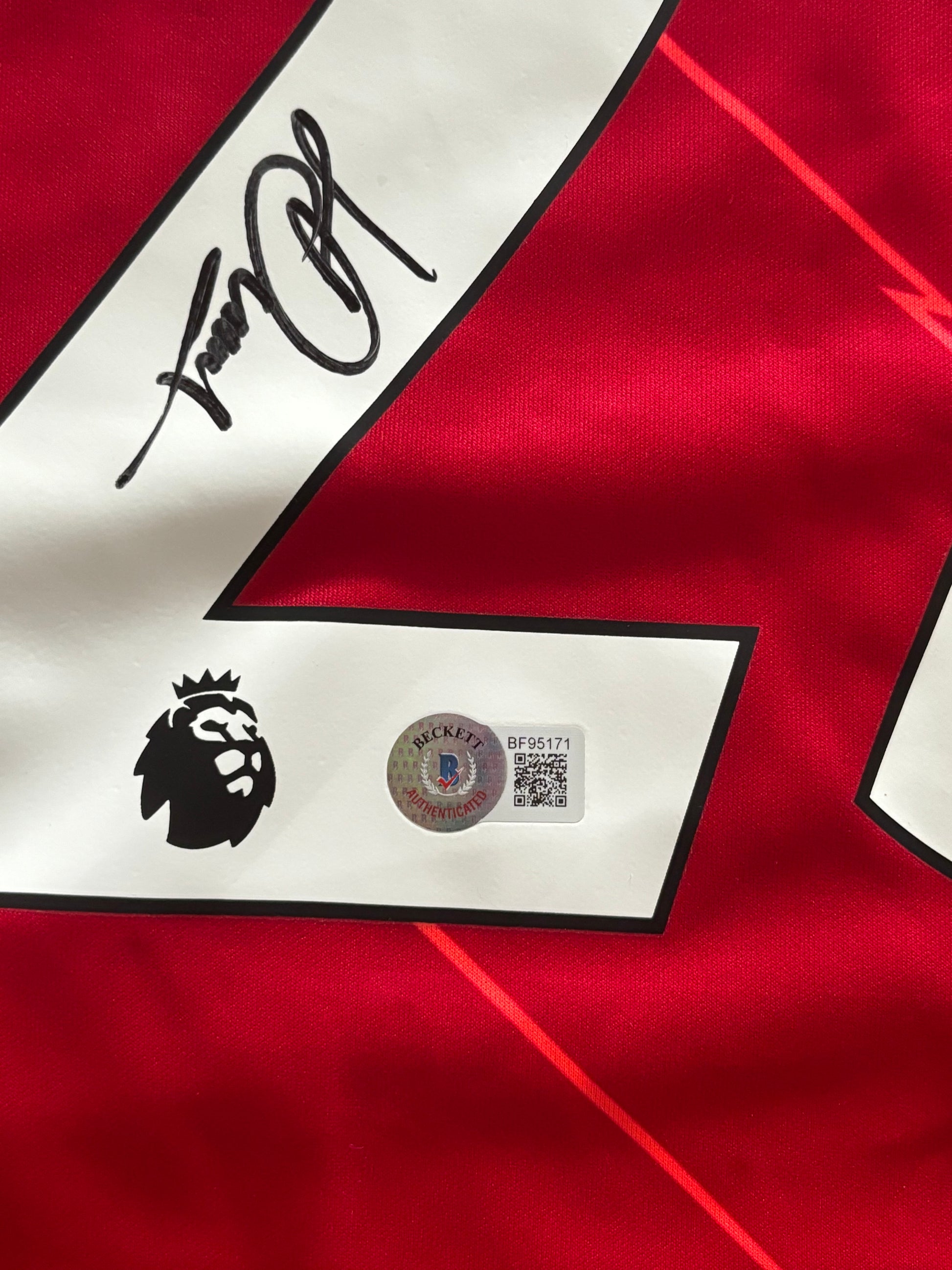 The product is a signed Luis Diaz Liverpool shirt, certified by Beckett with a COA QR Holo. This authentic football memorabilia piece features the signature of the Premiership player, making it a valuable collectible for fans of both Liverpool and football in general. The certification adds to the authenticity and appeal of the item, making it a desirable piece for any sports memorabilia collector.