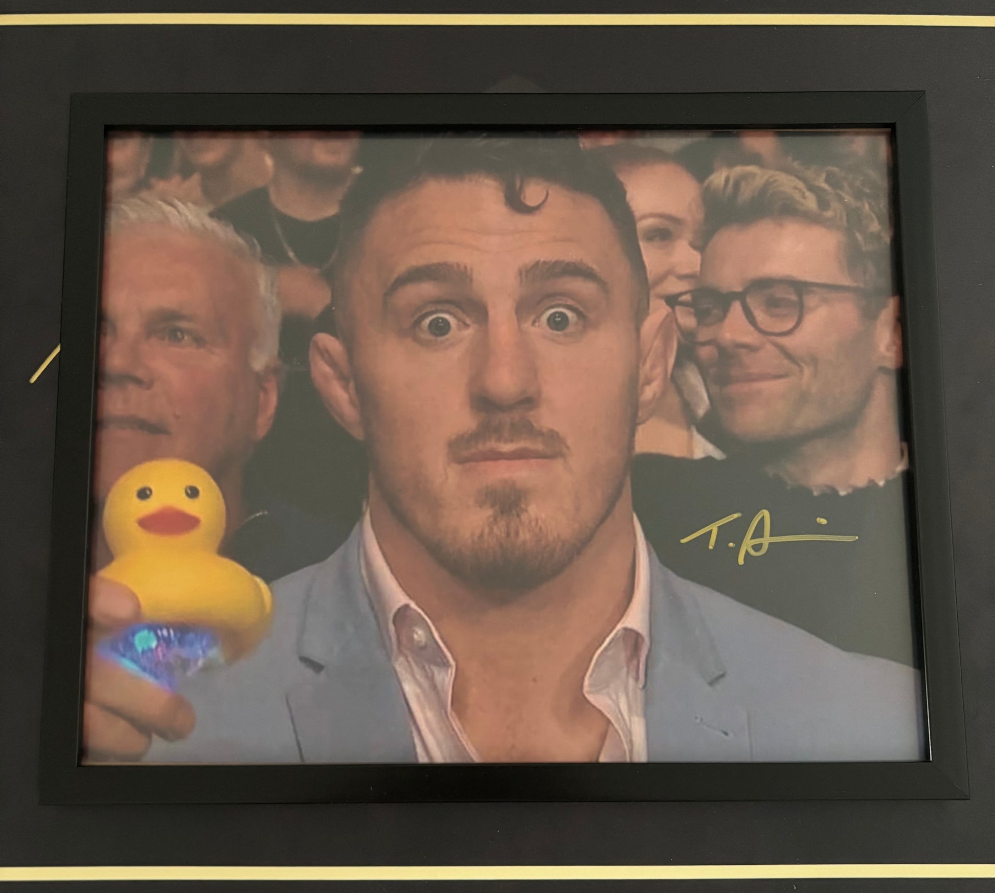 This 8x10 photo features a genuine signature from Tom Aspinall, making it a valuable addition for any sports memorabilia collector. The high-quality image captures Aspinall in action, and the authentic autograph adds a personal touch. Perfect for display, this signed photo offers a professional keepsake for fans and enthusiasts alike.